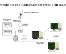 A radar system consists of a transmitter producing electromagnetic waves in the radio or microwaves domain, a transmitting antenna, a receiving antenna (often the same antenna is used for transmitting and receiving) and a receiver and processor to determine properties of the objects. Radio waves (pulsed or continuous) from the transmitter reflect off the objects and return to the receiver, giving information about the objects' locations and speeds.
