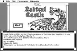 Radical Castle is a point-and-click adventure game released for Macintosh in 1986, developed in World Builder and distributed as shareware by Christopher Kent Wigginton.[2]