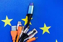 The Directive (EU) 2022/2380 is a directive of the European Parliament and the European Council which was formally adopted on 23 November 2022 amending Radio Equipment Directive 2014/53.[1] The directive mandates the use of USB-C as a universal charger using a standard USB-C to USB-C cable for smartphones, tablets, digital cameras, headphones, headsets, handheld video game consoles, portable speakers, e-readers, keyboards, mice, portable navigation systems, and earbuds that use wired charging by the end of 2024, and laptops by 2026.[2][3] Furthermore, if such equipment is capable of being recharged by wired charging at voltages higher than 5 volts, currents higher than 3 amperes, or powers higher than 15 watts, the equipment must support the full functionality of USB Power Delivery.
