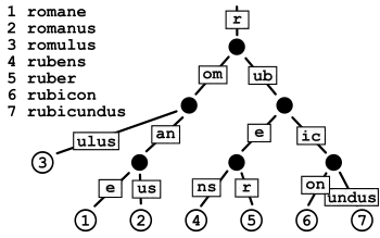 - Deterministic acyclic finite state automaton (DAFSA)