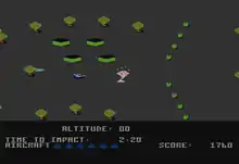 The game opens with an alert that a nuclear missile has been launched from a Soviet city towards a North American city.[6][7] The game begins in the hangar where the American spaceplanes are stored. The player has to safely fly the craft out.[7] The view switches to the earth as seen from low Earth orbit, and the player guides the spaceplane to the city launching the attack. Alternatively, the player may decide to maneuver more of the available spaceplanes out of the space station before attacking the launch site;[6] the surplus planes are docked outside the space station.[7] Meanwhile, the clock is ticking, and the time before impact is continually displayed.