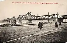 The Hanoi–Haiphong railway was one leg of the Yunnan–Vietnam Railway, which had begun construction in 1900, and continued northward with the erection of Paul Doumer Bridge (now known as Long Bien Bridge) in 1902, the largest bridge in Southeast Asia at that time.[21] Construction on the Yunnan line continued northwestward towards the border town of Lào Cai, opening in segments beginning in 1903; the entire Hanoi–Lào Cai line was finally opened in 1906. Finally, in 1910, the line was extended to its final destination of Kunming.[15][22] Construction of the Yunnan line was an extremely difficult undertaking, incurring not only great expenditures but also a great loss of human life. At least 12,000 labourers died from malaria or accidents, 10,000 of these in the Nanxi River Valley alone.[23]