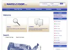 RateMyCop.com (also stylized RATEMYCOP.com[1]) was a review site that allowed users to give feedback on police officers in the United States. The website contained info on over 300,000 officers obtained through public records, which could be searched through by name, state, or department, in addition to allowing users to comment on and rate officers in regards to professionalism, fairness, and overall satisfaction. The website was started in February 2008 by Gino Sesto and Rebecca Costell, who were inspired by other websites that allowed users to rate their teachers or doctors. The website faced several challenges in its history, including its legality being challenged in the Utah State Senate, losing its domain hosts twice, and a user being arrested for posting on the website.