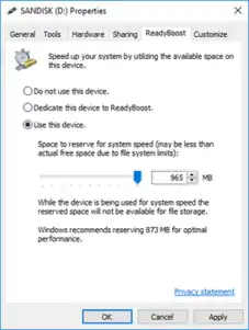 ![]() ReadyBoost as it appears in Windows 10. | |
