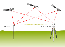 Real-time kinematic positioning (RTK) is the application of surveying to correct for common errors in current satellite navigation (GNSS) systems. It uses measurements of the phase of the signal's carrier wave in addition to the information content of the signal and relies on a single reference station or interpolated virtual station to provide real-time corrections, providing up to centimetre-level accuracy (see DGPS).[1] With reference to GPS in particular, the system is commonly referred to as carrier-phase enhancement, or CPGPS.[2] It has applications in land surveying, hydrographic surveying, and in unmanned aerial vehicle navigation.