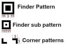 - Finder pattern on top-left corner with 1X separator on bottom-right space, the same as in QR Code;