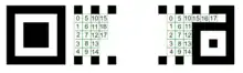 Rectangular Micro QR Code (also known as rMQR Code) is two-dimensional (2D) matrix barcode invented and standardized in 2022[1] by Denso Wave as ISO/IEC 23941.[2] rMQR Code is designed as a rectangular variation of QR code and has the same parameters and applications as original QR code. But rMQR Code is more suitable for the rectangular areas and has difference between width and height up to 19 in R7x139 version. In this way it can be used in places where 1D barcodes are used. rMQR Code can replace Code 128 and Code 39 barcodes with more effective data encoding.