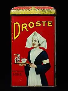 Recursion has been used in paintings since Giotto's Stefaneschi Triptych, made in 1320. Its central panel contains the kneeling figure of Cardinal Stefaneschi, holding up the triptych itself as an offering.[23][24] This practice is more generally known as the Droste effect, an example of the Mise en abyme technique.