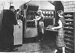 The Remington Rand 409, a punched card calculator which was programmed with a plugboard, was designed in 1949. It was sold in two models: the UNIVAC 60 (1952) and the UNIVAC 120 (1953). The model number referred to the number of decimal digits it could read from each punched card.[1]