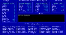 Renegade is a freeware bulletin board system (BBS) written for IBM PC-compatible computers running MS-DOS that gained popularity among hobbyist BBSes in the early to mid 1990s. It was originally written by Cott Lang in Turbo Pascal, optimized with assembly language, based on the source code of Telegard, which was in turn based on the earlier WWIV.