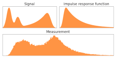 When an image is produced using an optical system and detected using photographic film or a charge-coupled device, for instance, it is inevitably blurred, with an ideal point source not appearing as a point but being spread out into what is known as the point spread function. Extended sources can be decomposed into the sum of many individual point sources, thus the observed image can be represented in terms of a transition matrix p operating on an underlying image: