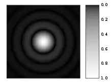 Fraunhofer diffraction yields the Airy disk as point spread function, which has a ringing pattern.