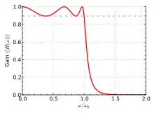 In the frequency domain, the cause can be interpreted as due to the sharp (brick-wall) cut-off, and ringing reduced by using a filter with smoother roll-off.[1] This is the case for the Gaussian filter, whose magnitude Bode plot is a downward opening parabola (quadratic roll-off), as its Fourier transform is again a Gaussian, hence (up to scale) – taking logarithms yields