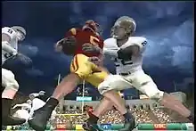 In mid-2006, Electronic Arts commissioned Rooster Teeth to direct[115] commercials for their EA Sports brand of games, including Madden NFL 07 and NCAA Football 07, for broadcast on television.[116] Rooster Teeth released some of this work on their website.[117] In late November 2006, controversy arose over a Madden NFL 07 commercial, when Indianapolis Colts tight end Dallas Clark complained about his depiction in the commercial.[118] Hit and tackled multiple times in the advertisement by Philadelphia Eagles players, Clark stated, "I haven't seen the commercial, but I'm upset about it. It makes me look like a punk."[118] In response, Rooster Teeth posted a director's cut, in which Clark plays and dominates every position.[119]
