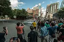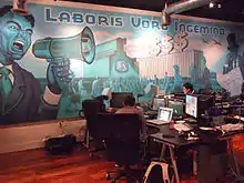Rooster Teeth has attributed their success to maintaining their community site and was reluctant to join YouTube initially, stating they viewed them as a "competitor".[20] In 2014, having signed a two-year lease, the entire company (now consisting of over 90 employees) moved into Stage 5 at Austin Studios.[21] In November 2014, Rooster Teeth was acquired by Fullscreen for an undisclosed amount.[22] Rooster Teeth agreed to be bought to give itself "the resources and tools" needed to compete against other producers. Burns elaborated by saying they consider Netflix, HBO, and Amazon their current competition.[20] On February 3, 2015, Burns confirmed that Rooster Teeth would be establishing an office in Los Angeles.[23] These offices were used by a whole new division, Funhaus.[24] The company released their feature film debut in 2015 with Lazer Team, a science fiction comedy.