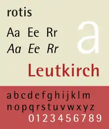 | Variations | Rotis serif Rotis semi-serif Rotis semi-sans rotis sans |