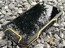 A rugged smartphone is a specific type of toughened smartphone which is designed to be completely sealed within a durable housing to protect it against damage from water, shock, dust, and vibration.[1][2][3] Rugged smartphones are designed to survive extreme weather and temperatures, accidental damage, and rough handling; making them ideal for working outdoors, or in harsh environments, along with use during extreme sports, such as sailing, rock climbing, etc.[1] Most rugged smartphones have been tested to tough IP68 standards.[1]