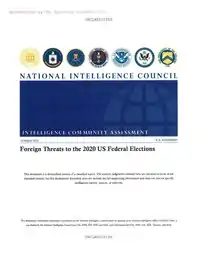 - "Foreign Threats to the 2020 US Federal Elections" (PDF). National Intelligence Council. March 16, 2021. Retrieved March 16, 2021.