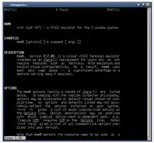 Rxvt was originally written by Rob Nation[2] and later extensively modified by Mark Olesen, who took over maintenance for several years. It is intended to be a slimmed-down alternate for xterm, omitting some of its little-used features, like Tektronix 4014 emulation and toolkit-style configurability. The latter refers to the Xt resource mechanism, e.g., for binding keys. Rxvt is an extended version of the older xvt terminal emulator by John Bovey of the University of Kent.