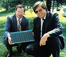 A burgeoning industry of "clone" machines followed the introduction of the Altair in 1975. Most of these used the same bus layout as the Altair, creating a new industry standard. These companies were forced to refer to the system as the "Altair bus", and wanted another name in order to avoid referring to their competitor when describing their own system. The "S-100" name, short for "Standard 100", was coined by Harry Garland and Roger Melen, co-founders of Cromemco.[3][4] While on a flight to attend the Atlantic City PC '76 microcomputer conference in August 1976, they shared the cabin with Bob Marsh and Lee Felsenstein of Processor Technology. Melen went over to them to convince them to adopt the same name. He had a beer in his hand and when the plane hit a bump, Melen spilt some of the beer on Marsh. Marsh agreed to use the name, which Melen ascribes to him wanting to get Melen to leave with his beer.[5]