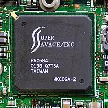 | Savage/IX (86C298) | 6/1999 | 0.18 | 100 MHz | 1 × 1 | 100 | 100 MHz | 128-bit | Notebooks. AGP 4X. 8MB memory integrated into the same chip as the GPU. |