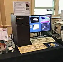 Silicon Graphics Computer Systems' first product, shipped in November 1983, was the IRIS 1000, a terminal with hardware-accelerated 3D graphics based on the Geometry Engine developed by Jim Clark and Marc Hannah at Stanford University. As a terminal, it was not intended for standalone use, and was instead attached to a VAX-11 running VAX/VMS or Unix. It was soon followed by the IRIS 1200, another terminal with a larger backplane,[1] before the IRIS 1400 emerged as SGCS's first standalone workstation in 1984.[2] The processor used in these early systems, the 'PM1', was a variant of the SUN (Stanford UNiversity) processor, and sported a Motorola 68000 (or 68010) clocked at 8 MHz. With the IRIS 2000 series (released in 1985) came SGCS's first internally-designed processor, with a Motorola 68010 running at 10 MHz. The final Motorola 68000-based series, the 3000s released in 1986, were built around a 68020 running at 16 MHz.[3] These systems ran the GL1, then GL2 operating system, a predecessor of the IRIX operating system, which is based on UniSoft UniPlus System V Unix.[4] GL2 uses a proprietary (and highly rudimentary) windowing system named mex (Multiple EXposure).[5]