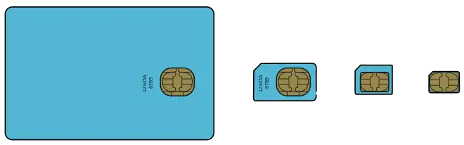 The first SIM cards were the size of credit and bank cards. Sizes were reduced several times over the years, usually keeping electrical contacts the same, to fit smaller-sized devices.[4]