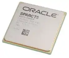 SPARC T5 is the fifth generation multicore microprocessor of Oracle's SPARC T series family.[1] It was first presented at Hot Chips 24 in August 2012,[2] and was officially introduced with the Oracle SPARC T5 servers in March 2013.[3] The processor is designed to offer high multithreaded performance (16 cores per chip, with 8 threads per core), as well as high single threaded performance from the same chip.[4]