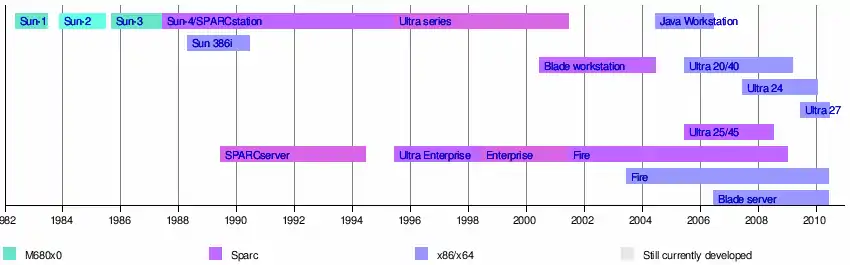 | SPARCstation 5 | S5 | Aurora | sun4m | microSPARC II or Fujitsu TurboSPARC | 70, 85, 110, 170 MHz | 256 MB | Mar 1994 | Dec 1998 | |