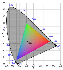 | Illuminant white point | x = 0.3127, y = 0.3290 (D65) |