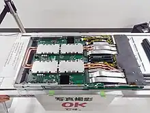 SXM (Server PCI Express Module)[1] is a high bandwidth socket solution for connecting Nvidia Compute Accelerators to a system. Each generation of Nvidia Tesla since P100 models, the DGX computer series and the HGX boards come with an SXM socket type that realizes high bandwidth, power delivery and more for the matching GPU daughter cards.[2] Nvidia offers these combinations as an end-user product e.g. in their models of the DGX system series. Current socket generations are SXM for Pascal based GPUs, SXM2 and SXM3 for Volta based GPUs, SXM4 for Ampere based GPUs, and SXM5 for Hopper based GPUs. These sockets are used for specific models of these accelerators, and offer higher performance per card than PCIe equivalents.[2] The DGX-1 system was the first to be equipped with SXM-2 sockets and thus was the first to carry the form factor compatible SXM modules with P100 GPUs and later was unveiled to be capable of allowing upgrading to (or being pre-equipped with) SXM2 modules with V100 GPUs.[3][4]
