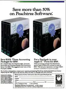 Peachtree Accounting was originally sold by Peachtree Software, a software publisher founded in Atlanta in 1978 by Ben Dyer,[10] Ron Roberts, Steve Mann, and John Hayes. The company was carved out of The Computersystem Center, an early Altair dealer founded by Roberts, Mann, Jim Dunion, and Rich Stafford, which Dyer had joined as the manager and where its first software was published in 1977. Peachtree was the first successful business software made for microcomputers, supplanting the General Ledger programmed with CBASIC and distributed by Structured Systems Group.[11] It is the oldest microcomputer computer program for business in current use. The company expanded its offerings with its acquisition of Layered, an accounting program designed for use on the Macintosh. The company's products were included in the initial launch of the IBM Personal Computer, and it was acquired by Management Science America (MSA) in June 1981.
