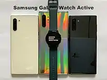 The Samsung Galaxy Watch Active is a smartwatch developed by Samsung Electronics. It was announced on 20 February 2019.[1] The Galaxy Watch Active was scheduled for availability in the United States starting on March 8, 2019.