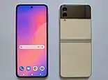 The Samsung Galaxy Z Flip 4 (stylized as Samsung Galaxy Z Flip4) is a foldable smartphone that is part of the Samsung Galaxy Z series. This device was announced in August 2022,[16][17] with a release either later in the month or in early September.[18][19]