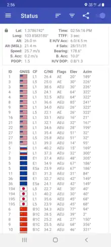 | System | BeiDou | Galileo | GLONASS | GPS | NavIC | QZSS |