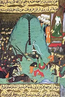 For much of the 10th century, the Isma'ili-Shi'ite Qarmatians were the most powerful force in the Persian Gulf. In 930, the Qarmatians pillaged Mecca, outraging the Muslim world, particularly with their theft of the Black Stone.[80] In 1077–1078, an Arab sheikh named Abdullah bin Ali Al Uyuni defeated the Qarmatians in Bahrain and al-Hasa with the help of the Seljuq Empire and founded the Uyunid dynasty.[81][82] The Uyunid Emirate later underwent expansion with its territory stretching from Najd to the Syrian Desert.[83] They were overthrown by the Usfurids in 1253.[84] Usfurid rule was weakened after Persian rulers of Hormuz captured Bahrain and Qatif in 1320.[85] The vassals of Ormuz, the Shia Jarwanid dynasty came to rule eastern Arabia in the 14th century.[86][87] The Jabrids took control of the region after overthrowing the Jarwanids in the 15th century and clashed with Hormuz for more than two decades over the region for its economic revenues, until finally agreeing to pay tribute in 1507.[86] Al-Muntafiq tribe later took over the region and came under Ottoman suzerainty. The Bani Khalid tribe later revolted against them in the 17th century and took control.[88] Their rule extended from Iraq to Oman at its height, and they too came under Ottoman suzerainty.[89][90]