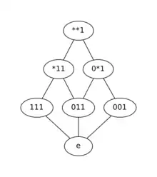 where is a schema of length such that the symbol at position in is determined in the following way: if for all then otherwise . If then . One can think of this operator as stacking up all the items in and if all elements in a column are equivalent, the symbol at that position in takes this value, otherwise there is a wild card symbol. For example, let then .