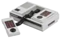 In 1978, Magnavox released its microprocessor-based console, the Odyssey 2, in the United States and Canada.[37] It was distributed by Philips Electronics in the European market and was released as the Philips G7000.[38] A defining feature of the system was the speech synthesis unit add-on which enhanced music, sound effects and speech capabilities.[39] The Odyssey² was also known for its fusion of board and video games. Some titles came with a game board and pieces which players had to use in conjunction to play the game. Although the Odyssey² never became as popular as the Atari consoles, it sold 2 million units throughout its lifetime. This made it the third best selling console of the generation.[40] It was discontinued in 1984.[41]