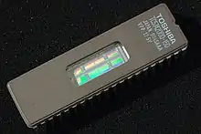 The term "memory" is also often used to refer to non-volatile memory, specifically flash memory. It has origins in read-only memory (ROM). Programmable read-only memory (PROM) was invented by Wen Tsing Chow in 1956, while working for the Arma Division of the American Bosch Arma Corporation.[29][30] In 1967, Dawon Kahng and Simon Sze of Bell Labs proposed that the floating gate of a MOS semiconductor device could be used for the cell of a reprogrammable read-only memory (ROM), which led to Dov Frohman of Intel inventing EPROM (erasable PROM) in 1971.[31] EEPROM (electrically erasable PROM) was developed by Yasuo Tarui, Yutaka Hayashi and Kiyoko Naga at Japan's Ministry of International Trade and Industry (MITI) Electrotechnical Laboratory in 1972.[32] Flash memory was invented by Fujio Masuoka at Toshiba in the early 1980s.[33][34] Masuoka and colleagues presented the invention of NOR flash in 1984,[35] and then NAND flash in 1987.[36] Toshiba commercialized NAND flash memory in 1987.[37][38]