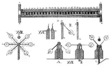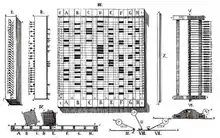 While working in the statistics department of the Police Ministry, Korsakov became intrigued with the possibility of using machinery to "enhance natural intelligence". To this end, he devised several devices which he called "machines for the comparison of ideas".[2] These included the "linear homeoscope with movable parts", the "linear homeoscope without movable parts", the "flat homeoscope", the "ideoscope", and the "simple comparator". The purpose of the devices was primarily to facilitate the search for information, stored in the form of punched cards or similar media (for example, wooden boards with perforations). Korsakov announced his new method in September 1832, and rather than seeking patents offered the machines for public use.
