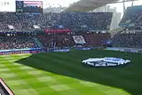 The rivalry became prominent in the mid-2000s after the name Magyedaejeon was dubbed to the game. The name "Magyedaejeon" derived from a graphic novel with the same title by a renowned Korean cartoonist Kim Sung-Mo.[2] Some fans came up with the idea to use the name for the match between Seongnam and Suwon because Magyedaejeon, which can be translated into the "Battle between Horse and Rooster," can be viewed an interesting symbolization of the game. Seongnam's mascot Chunma (Korean: 천마), which is Korean Pegasus, represents "Ma" (Korean: 마), which is horse, while "Gye" (Korean: 계), rooster, perfectly matches Suwon's name, "Bluewings."[3] The name became popular after Schadarappa, a popular Korean football cartoonist famous for being a fervent Seongnam fan, frequently used the term in his cartoons.[4]