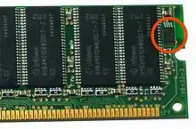 In computing, serial presence detect (SPD) is a standardized way to automatically access information about a memory module. Earlier 72-pin SIMMs included five pins that provided five bits of parallel presence detect (PPD) data, but the 168-pin DIMM standard changed to a serial presence detect to encode more information.[1]