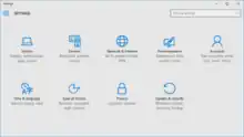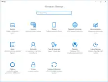 The second generation of the app, called "Settings" has been included with all releases of Windows 10 (including Windows 10 Mobile edition),[5][6] as well as Windows Server 2016, 2019 and 2022. It includes more options that were previously exclusive to the desktop Control Panel. Windows Update, which belonged to the Control Panel prior to Windows 10, now exclusively belong to Settings. The latest version contains the following categories: