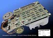 Also in 1979, Shugart Associates introduced the SA-1000, a series of hard disk drives that kept as many mechanical, electrical and formatting similarities as possible with its floppy-drive counterparts. Their physical dimensions, including mounting holes, were the same as an 8-inch floppy drive, making them some of the earliest hard drives compatible with a floppy drive form factor.[9] By 1983, Shugart Associates had shipped over 100,000 such drives.