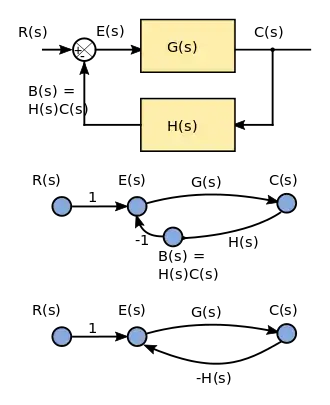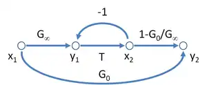 - ↑ Katsuhiko Ogata (1997). "Signal flow graphs". Modern Control Engineering (4th ed.). Prentice Hall. p. 104. ISBN 978-0130432452.