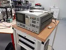 A signal analyzer is an instrument that measures the magnitude and phase of the input signal at a single frequency within the IF bandwidth of the instrument. It employs digital techniques to extract useful information that is carried by an electrical signal.[1] In common usage the term is related to both spectrum analyzers and vector signal analyzers. While spectrum analyzers measure the amplitude or magnitude of signals, a signal analyzer with appropriate software or programming can measure any aspect of the signal such as modulation. Today’s high-frequency signal analyzers achieve good performance by optimizing both the analog front end and the digital back end.[2]