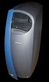 SGI rapidly developed its machines into workstations with its second product line — the IRIS 2000 series, first released in August 1985.[36] SGI began using the UNIX System V operating system. There were five models in two product ranges, the 2000/2200/2300/2400/2500 range which used 68010 CPUs (the PM2 CPU module), and the later "Turbo" systems, the 2300T, 2400T and 2500T, which had 68020s (the IP2 CPU module). All used the Excelan EXOS/201 Ethernet card, the same graphics hardware (GF2 Frame Buffer, UC4 Update Controller, DC4 Display Controller, BP3 Bitplane). Their main differences were the CPU, RAM, and Weitek Floating Point Accelerator boards, disk controllers and disk drives (both ST-506 and SMD were available). These could be upgraded, for example from a 2400 to a 2400T. The 2500 and 2500T had a larger chassis, a standard 6' 19" EIA rack with space at the bottom for two SMD disk drives weighing approximately 68 kg each.[37] The non-Turbo models used the Multibus for the CPU to communicate with the floating point accelerator, while the Turbos added a ribbon cable dedicated for this. 60 Hz monitors were used for the 2000 series.