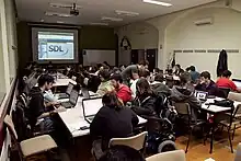 SDL is used in university courses teaching multimedia and computer science, for instance, in a workshop about game programming using libSDL at the University of Cadiz in 2010, or a Game Design discipline at UTFPR (Ponta Grossa campus) in 2015.