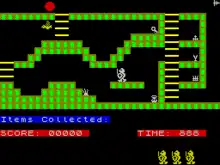 Sir Lancelot, controlled by the player, must explore the 24[2] rooms of the castle and collect all the objects (which come in many forms but glow to make them identifiable) in each room before making his way to the exit to the next.[2] His task is made more difficult by the presence of various guardians (including animals and soldiers)[2] who he must avoid in each room. He also has a time limit in which to complete each room. Control is very simple, with only three keys needed: left, right and jump. A joystick can also be used.[2]