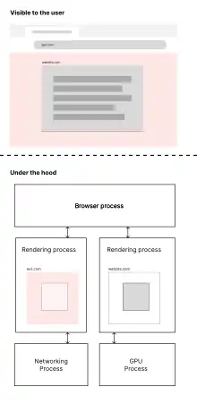 Until 2017, the predominant security architecture of major browsers adhered to the process-per-browsing-instance model. This entailed the browser comprising distinct sandboxed processes, including the browser process, GPU process, networking process, and rendering process. The rendering process would engage with other privileged services when necessary to execute elevated actions when viewing a web page.[1][2]